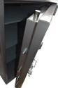 - Heavy duty steel hinge and 3 spoke chrome-plated vault handle